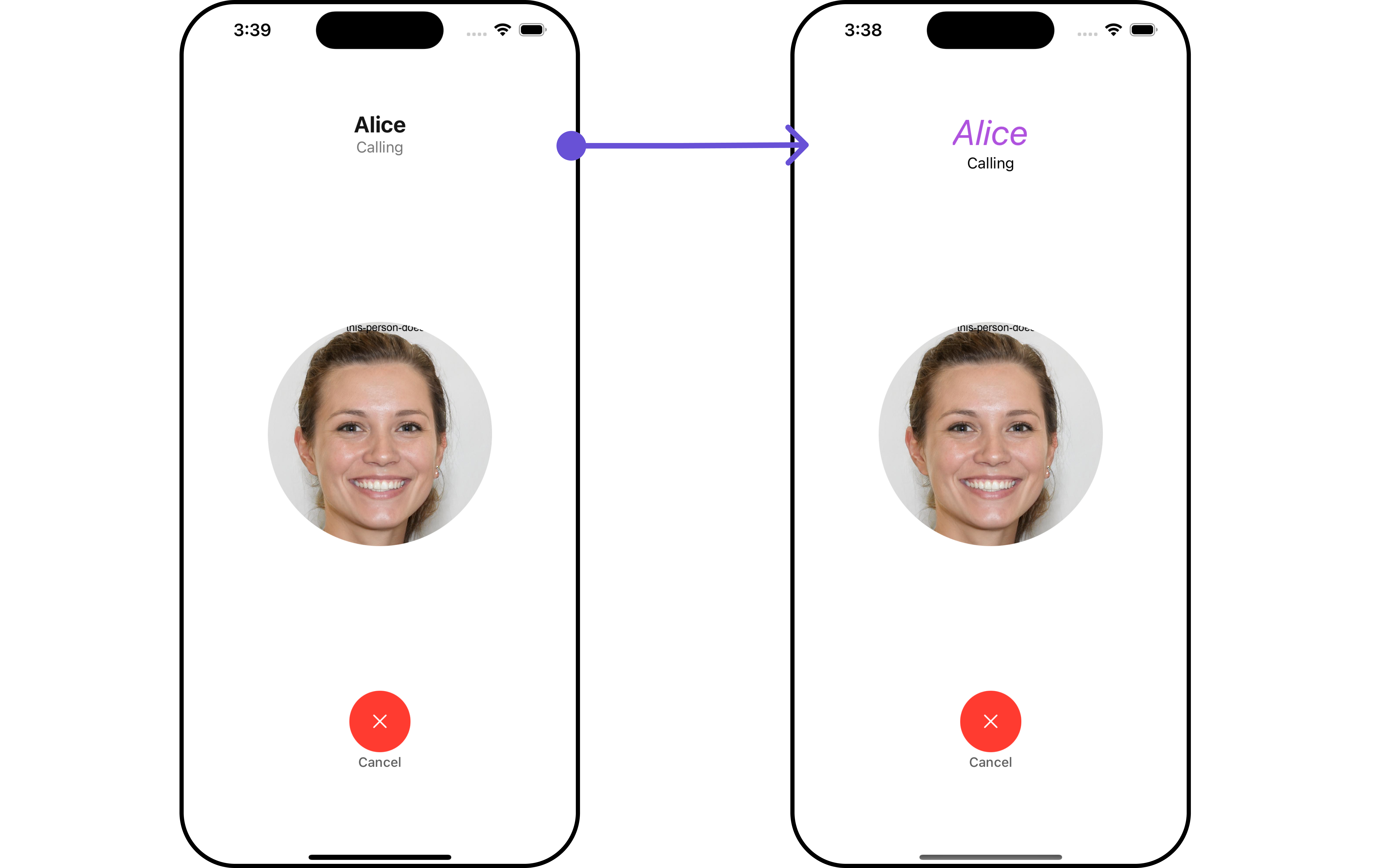 The Outgoing Call Component is a visual representation of a user-initiated call, whether it’s a voice or video call. It serves as an interface for managing outgoing calls, providing users with essential options to control the call experience. This component typically includes information about the call recipient, call controls for canceling the call, and feedback on the call status, such as indicating when the call is in progress.